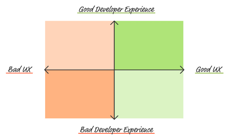 The two constraints you need to optimize for are developer experience and user experience. When we throw some colors into the mix, the solution you need to employ would ideally be in the top-right darker green shaded region: