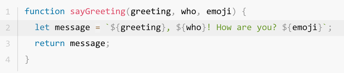Combining strings in JavaScript has always been a bit messy. It involves a lot of quotation marks and plus signs, and it was almost always an exercise in trial and error: