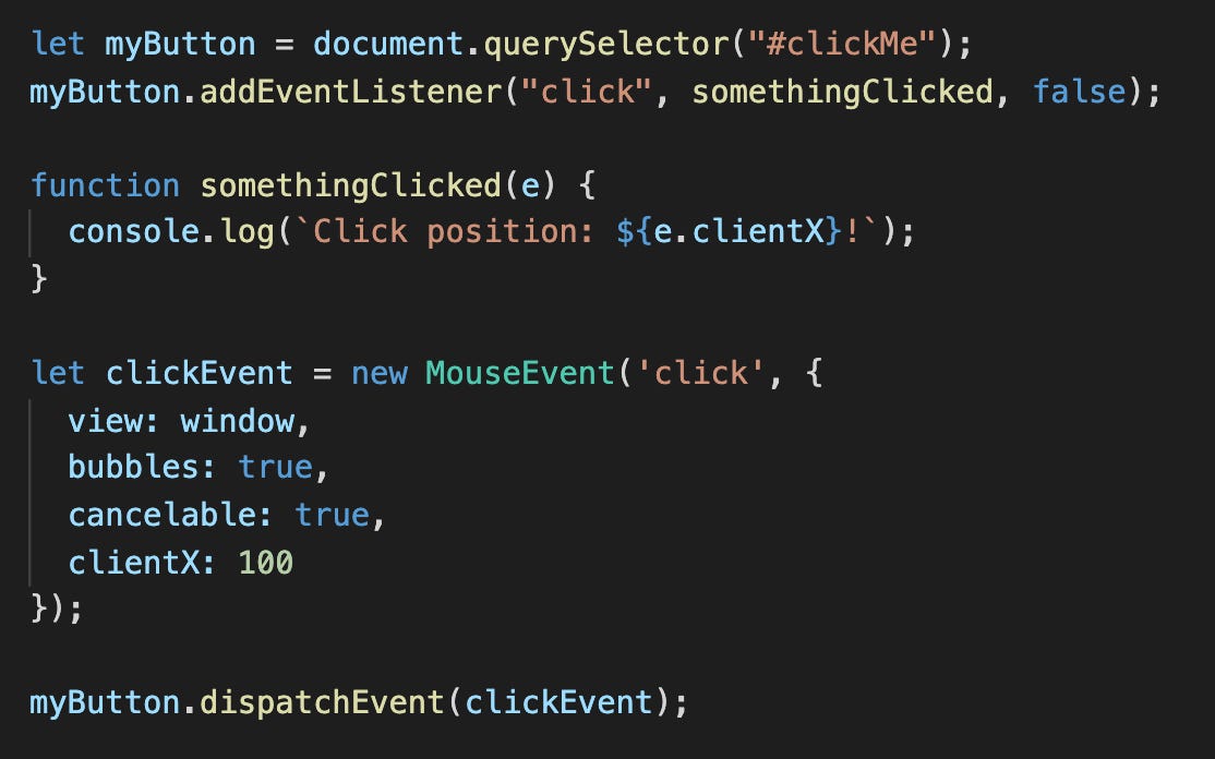 What this snippet shows is way we can programmatically trigger a built-in event, like our friendly-as-a-mouse click event.