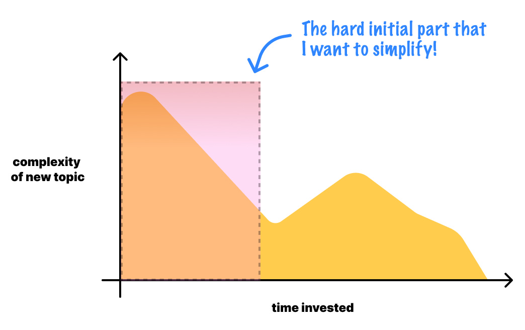 What I’ve found from many years of teaching is that everybody is capable of learning very complicated topics. The first few moments with a topic and helping learners cross this initial complexity hump is important. If the learning material doesn’t do a good job here, large groups of learners will be left behind. If we give visual learners the same material that is optimized for non-visual learners, they don’t cross this initial complexity hump. I want to help fix this.