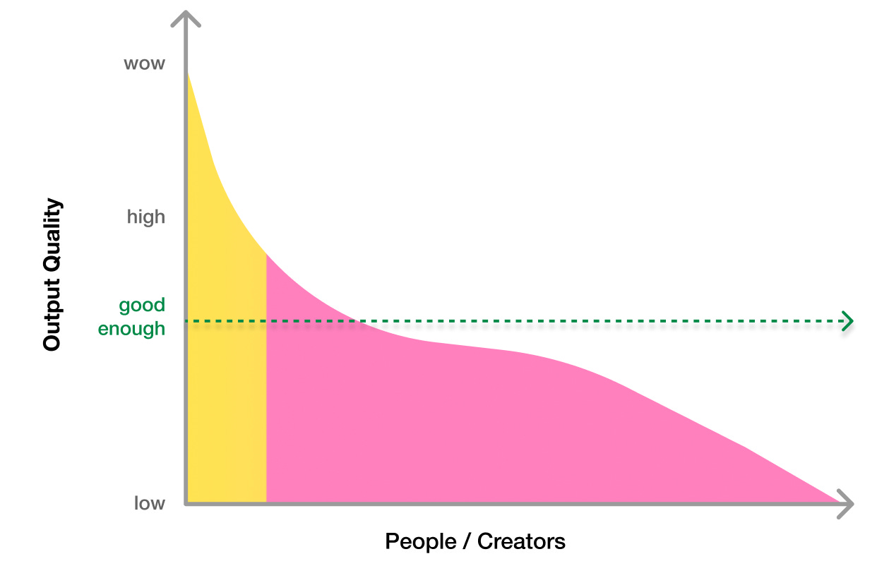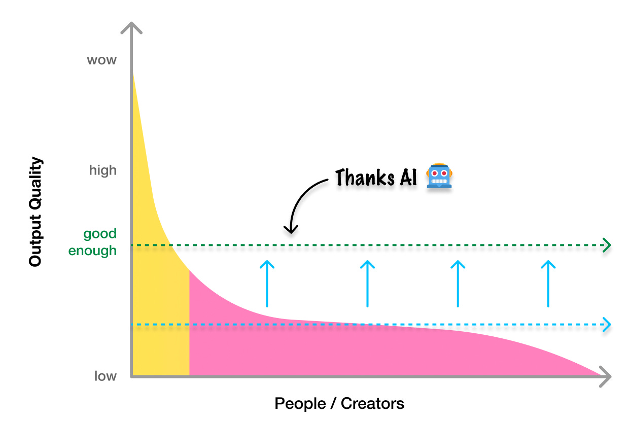 Now, what AI is doing is lowering the bar for how much effort it takes to create content. This is a democratizing moment that brings in more people into the content creator fold: