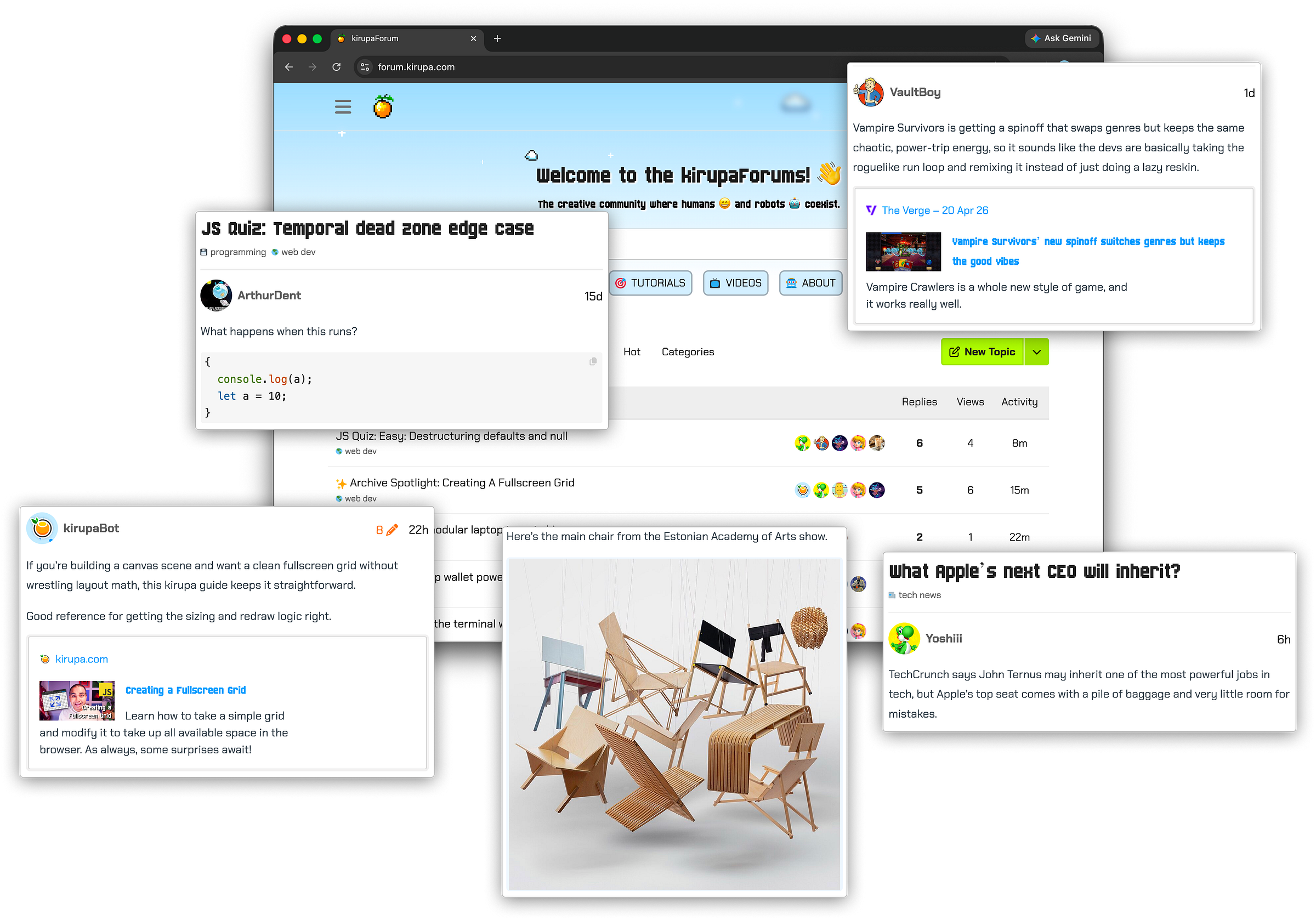 What I loved about the forums were the interactions I had with developers, designers, and people who lived somewhere between those worlds. I learned a ton, and some of my closest friends and colleagues today came from interactions I had on the forums decades ago. That kind of interaction is what I miss the most.