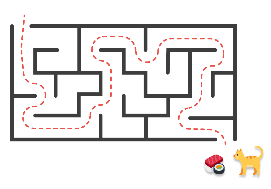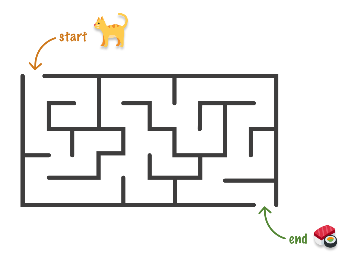 The challenge (and fun!) is for you and me to find a path between the starting and ending points without running into any walls and/or dead ends. There will always be at least one path that we can take:
