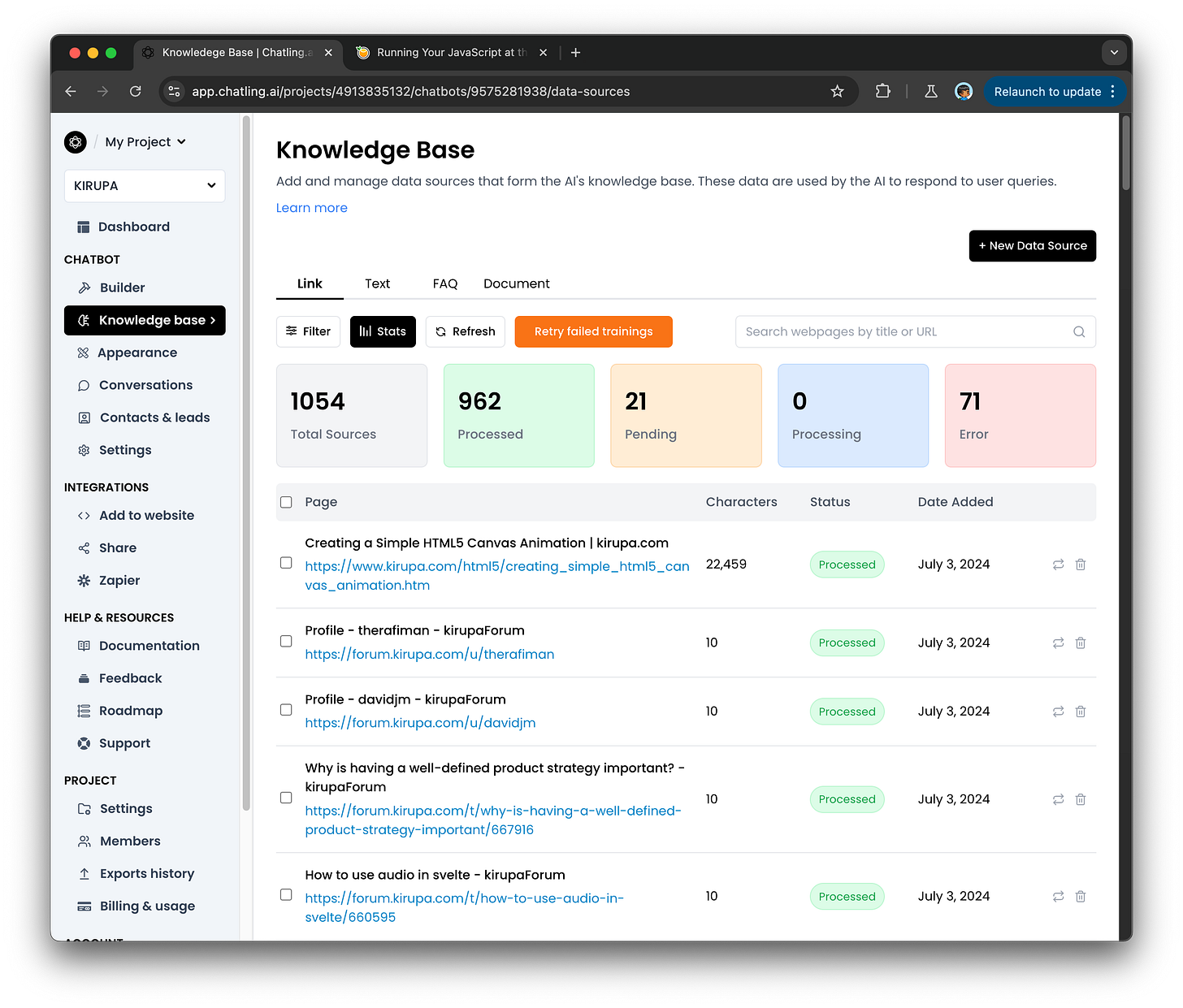 I also optimized the chatbot’s knowledge base with content from the site: