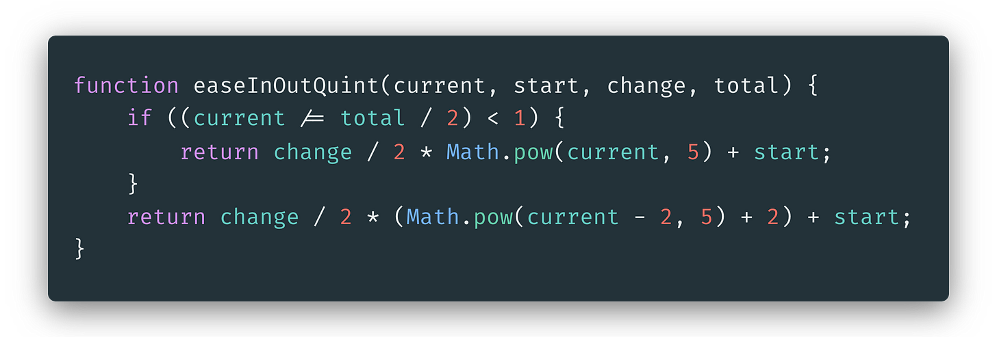 For animations created in JavaScript, a timing function is just code. There are no limitations to how elaborate our timing function can become, and there are many prebuilt libraries of timing functions that we can use, such as the infamous Penner Easing equations (JS-only code):