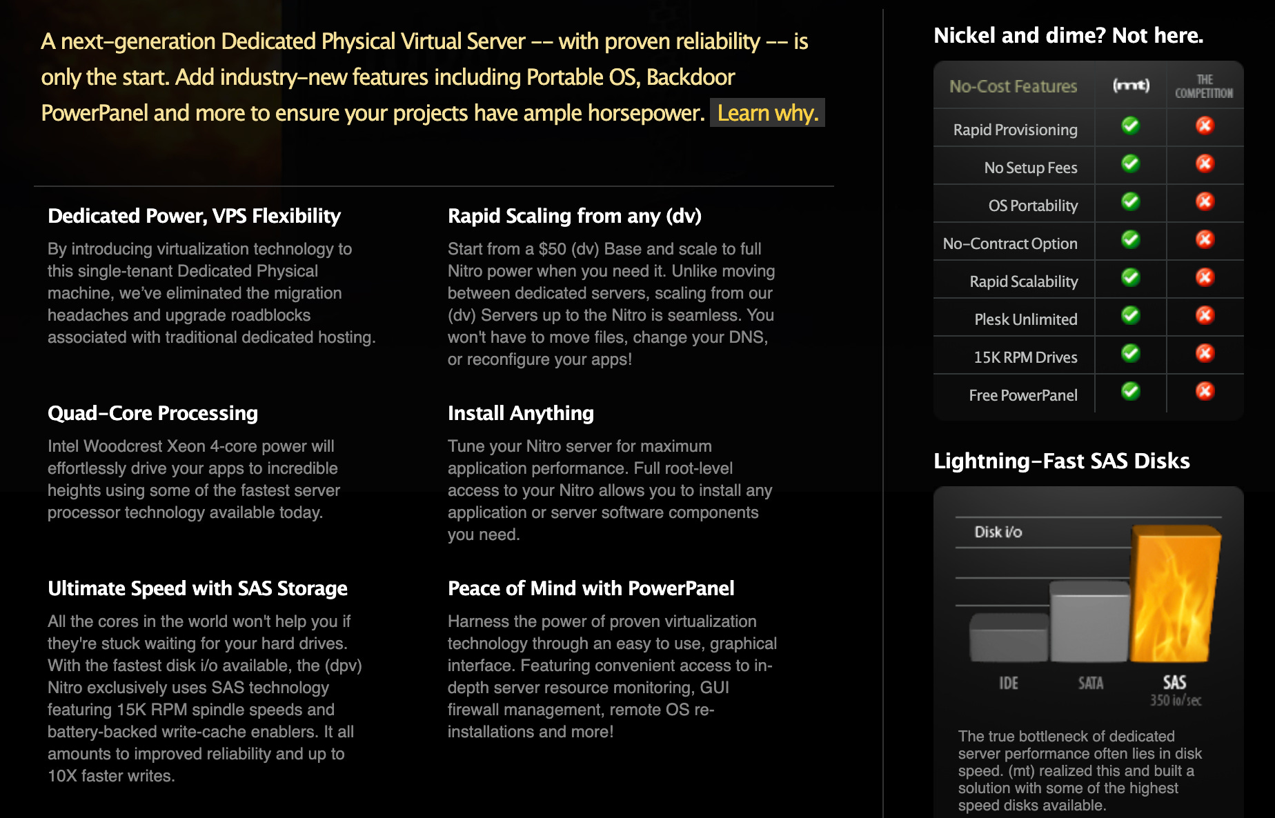 To get an idea of what web hosts emphasized as selling points, below is a screenshot of Media Templeโs site from 2010:
