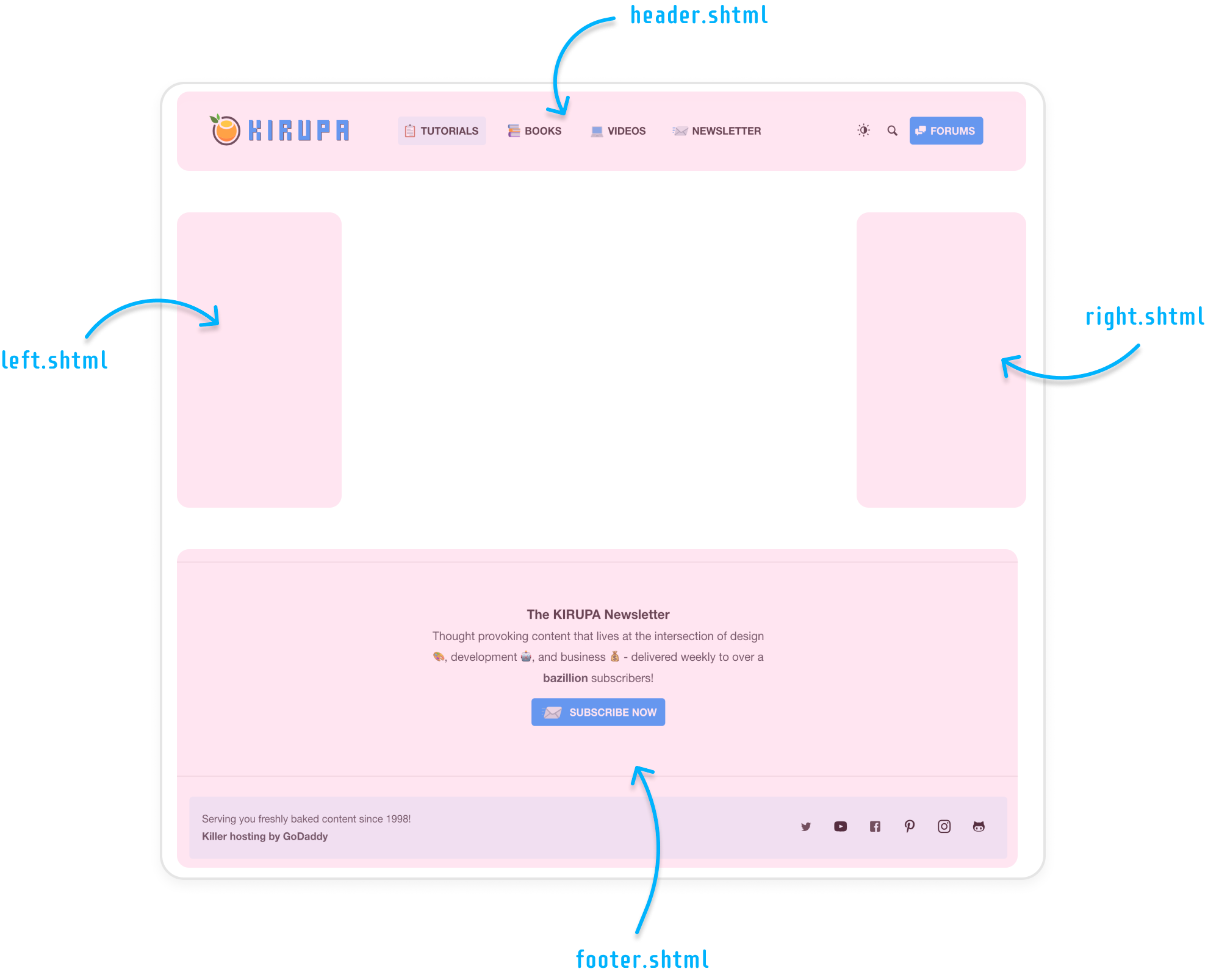 New content still starts off as a Save As of an existing page, but somewhere in the early 2000s, I switched the common header/footer/navigation page elements to be served from a template: