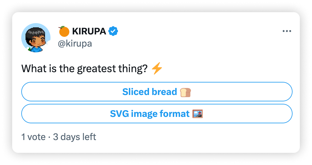 Before I go, if you are interested in a very light-hearted poll related to todayβs SVG topic, hop on over to Twitter and vote: