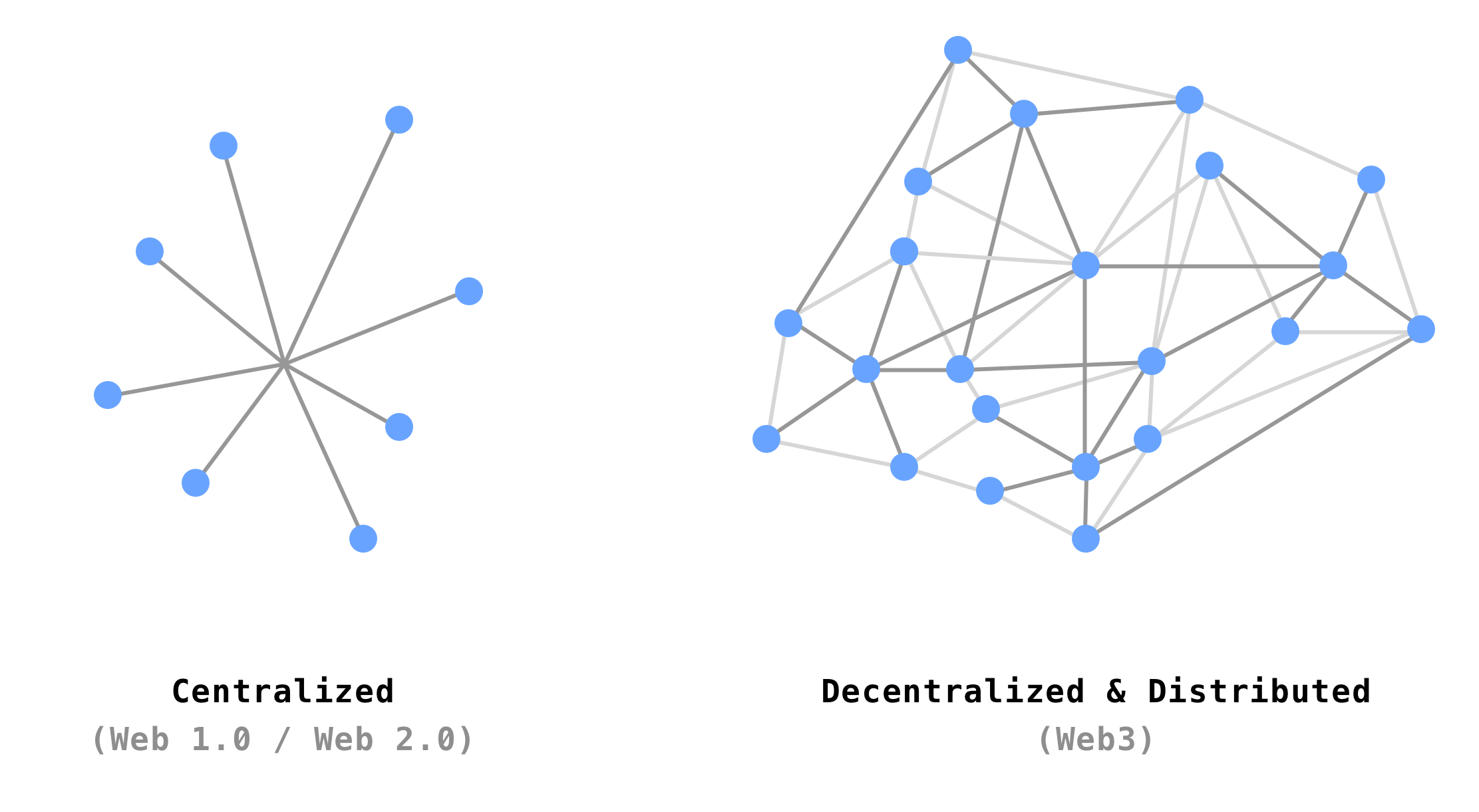 If any central node (ie: Geocities) in a centralized system is removed, the entire system will have problems where data gets lost. This is a problem we had with Web 1.0 and continue to have with Web 2.0. Because data in Web3 is stored in a blockchain in a distributed and decentralized way, this data will theoretically live forever since too many copies of the data will be floating around. No one person or organization can control the data, alter the data, or remove it. This brings with it a lot of technical changes to how we traditionally think about app development.